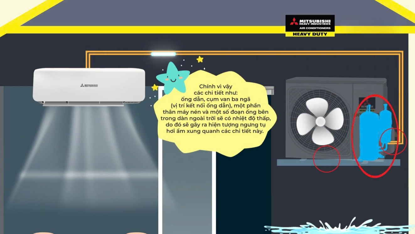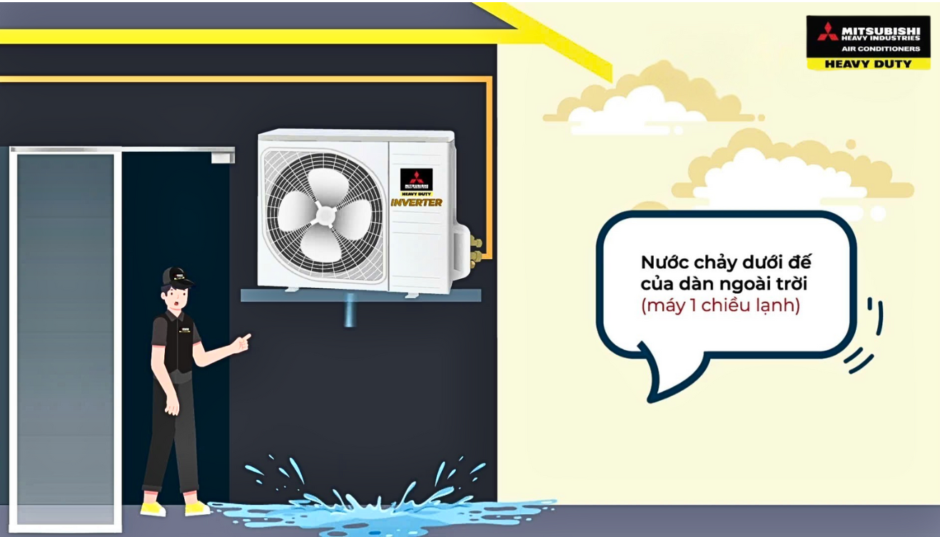 Giải thích hiện tượng dàn nóng điều hòa Mitsubishi Heavy Industries chảy nước