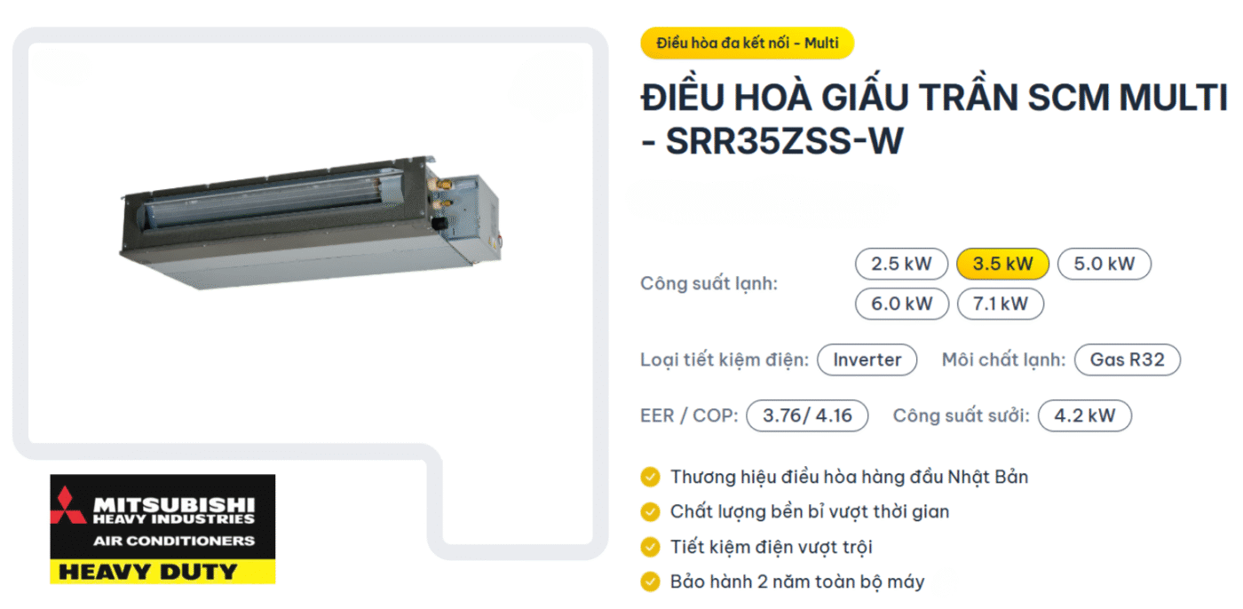 Dàn lạnh giấu trần Multi Mitsubishi Heavy 1.5HP SRR35ZSS-W