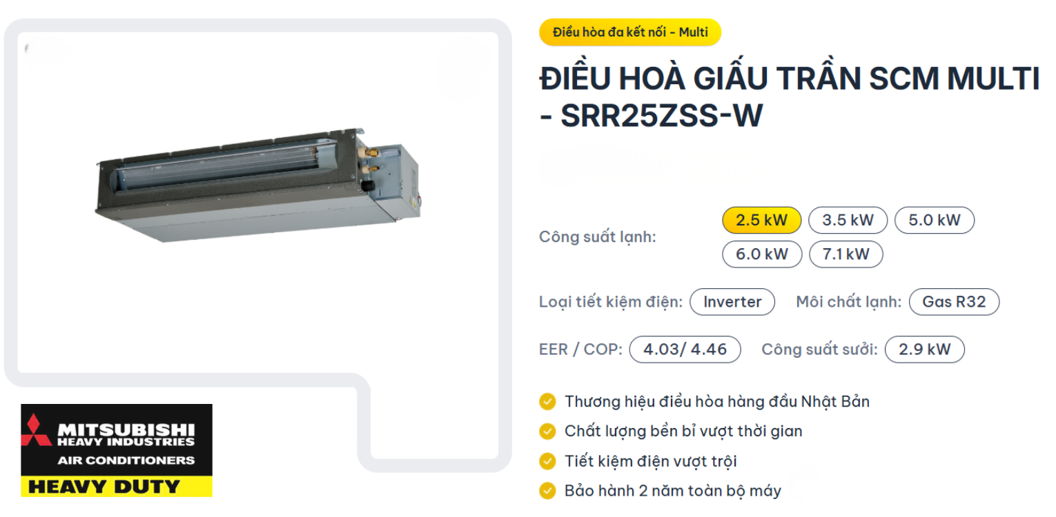 Dàn lạnh giấu trần Multi Mitsubishi Heavy 1HP SRR25ZSS-W